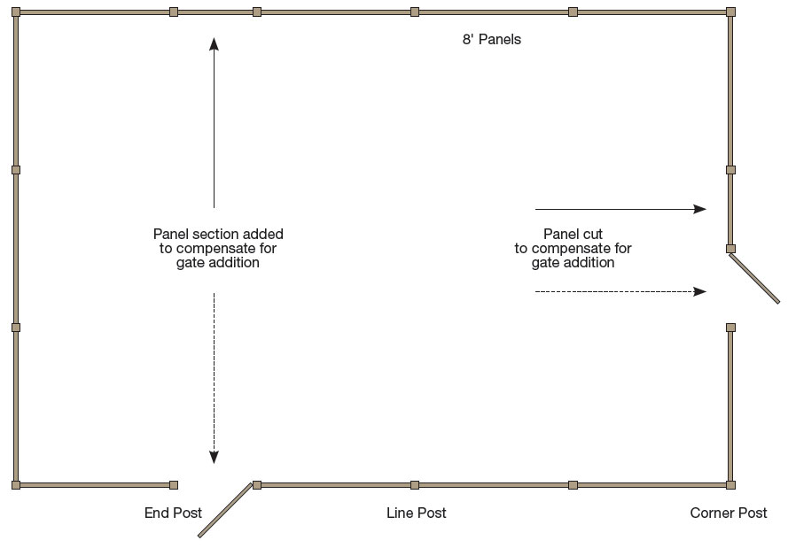 Wood fence panels are typically 8' wide and vary in height from 3' to 8' — and can be taller — depending upon the style of fence you prefer. Posts, caps, and hardware are ordered separately allowing you to add a look of your own. Posts and caps come in 4" x 4" (3.5" sq), 5" x 5" (4.5" sq), and 6" x 6" (5.5" sq) sizes, and in 8', 9', 10', 11' and 12' post heights [lengths]. Posts are also available as blank posts, end posts, line Posts and corner posts. Don't forget to add a walkway gate* or a driveway gate* if you are enclosing your entire property. Use accurate dimensions when planning your fence. *A Note about gates!